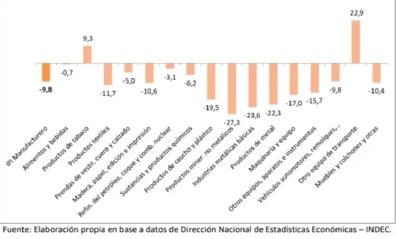 ¿Cómo se explican tales números? Es posible advertir al menos cinco medidas económicas impulsadas desde comienzo de la gestión libertaria que impactaron en la actividad económica en general y en la industria manufacturera en particular. Por un lado, el fuerte ajuste fiscal y, en relación, la caída del consumo interno resultado de la pérdida del poder adquisitivo de los hogares, que deprimió la demanda.