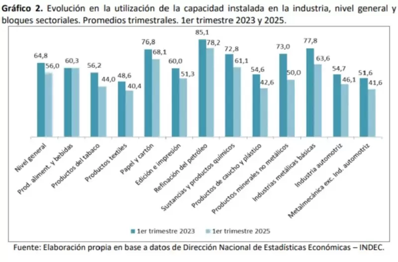 Esta semana se conocerán datos clave sobre el nivel de actividad y la capacidad instalada de la industria nacional. Desde que asumió La Libertad Avanza al frente del gobierno nacional, el sector industrial argentino enfrenta una fuerte retracción como resultado de un combo letal de medidas que incluye ajuste fiscal, crisis del consumo interno, apertura importadora, apreciación del tipo de cambio y desmantelamiento de políticas industriales. Como resultado, el sector que explica el 19% del PBI nacional, se encuentra en la cuerda floja al punto de que el 80% de las firmas considera que no será posible mejorar la utilización de su capacidad instalada en el corto plazo y al menos 7 de cada 10 no vislumbra una mejora de la economía para este año.